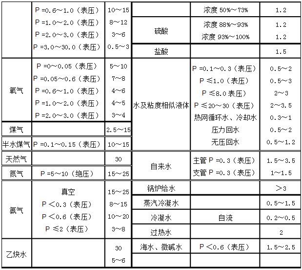 一般情況下,流量是已知的,流速可由經(jīng)驗(yàn)確定。各種介質(zhì)常用流速見表2-2。通過流速和流量可以計(jì)算閥門的公稱通徑。 閥門通徑相同,其結(jié)構(gòu)型式不同,流體的阻力也不一樣。在相同條件下,閥門的阻力系數(shù)越大,流體通過閥門的流速、流量下降越多;閥門阻力系數(shù)越小,流體通過閥門的流速、流量下降越少。常見介質(zhì)的流速見表2-2。